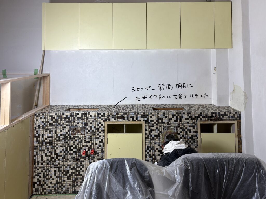 昨日は北大路の美容室改装工事のタイル貼り作業でした。