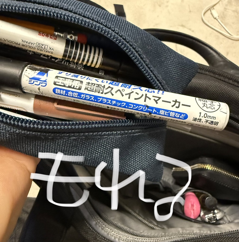 今までは100均の油性マジックで対応していましたが、コンクリートなどに書くと
