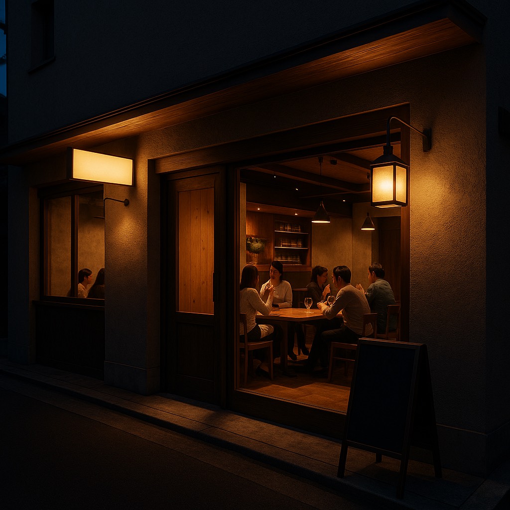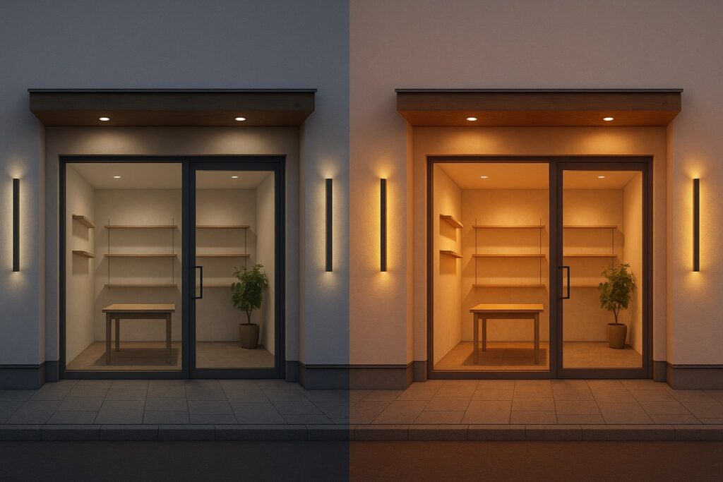 ・照明の再計画で店舗外観の演出照明を追加することで、暗くなってもお店の存在感UP!!